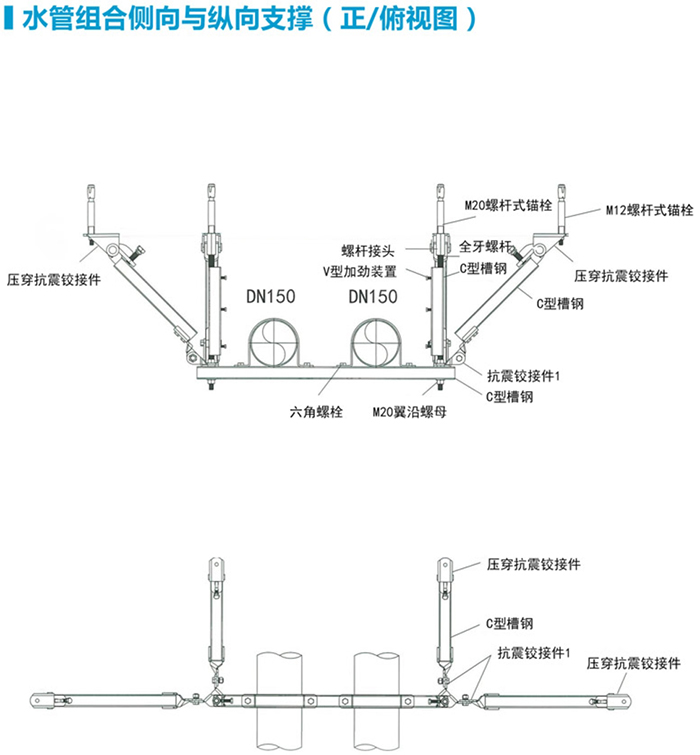 抗震支吊架設計示意圖:江蘇卡倫特新能源科技有限公司